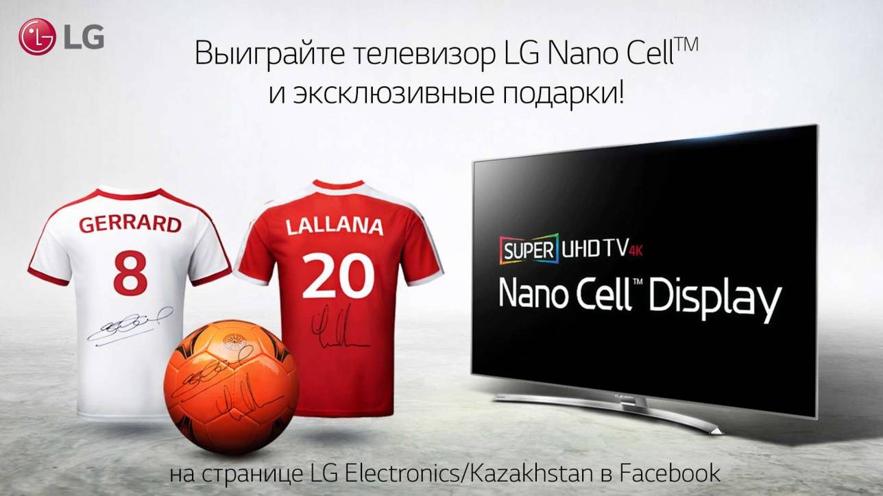 Конкурс продлится с 18 августа по 10 сентября 2017 г. Принять участие в нём мо-гут пользователи социальной сети Facebook. По условиям конкурса необходимо поставить "лайк" посту с видеоигры Лалланы и Джеррарда, отметить друга в комментариях и указать хэштег ##LGNanoCellSuperMatch. Переходите на страницу LG Electronics \ Kazakhstan, участвуйте и выигрывайте новый телевизор LG SUPER UHD Nano Cell и брендированные эксклюзивные футбольные сувениры. Победитель будет объявлен 15 сентября.
