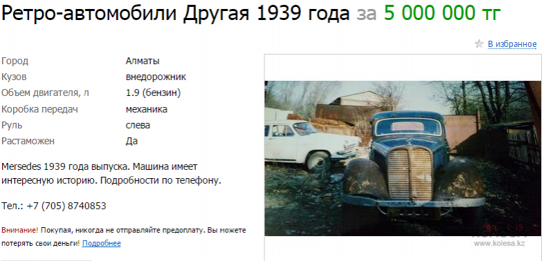 "Фильм был про старую послевоенную Алматы. Я подрабатывал на "Казахфильме" тогда, красил им машины. В том числе и этот мерседес. Денег у них не хватало, они рассчитались со мной машиной. Тогда разруха была, начало лихих 90-х", – объясняет Власов.