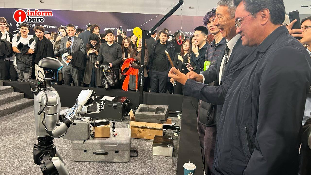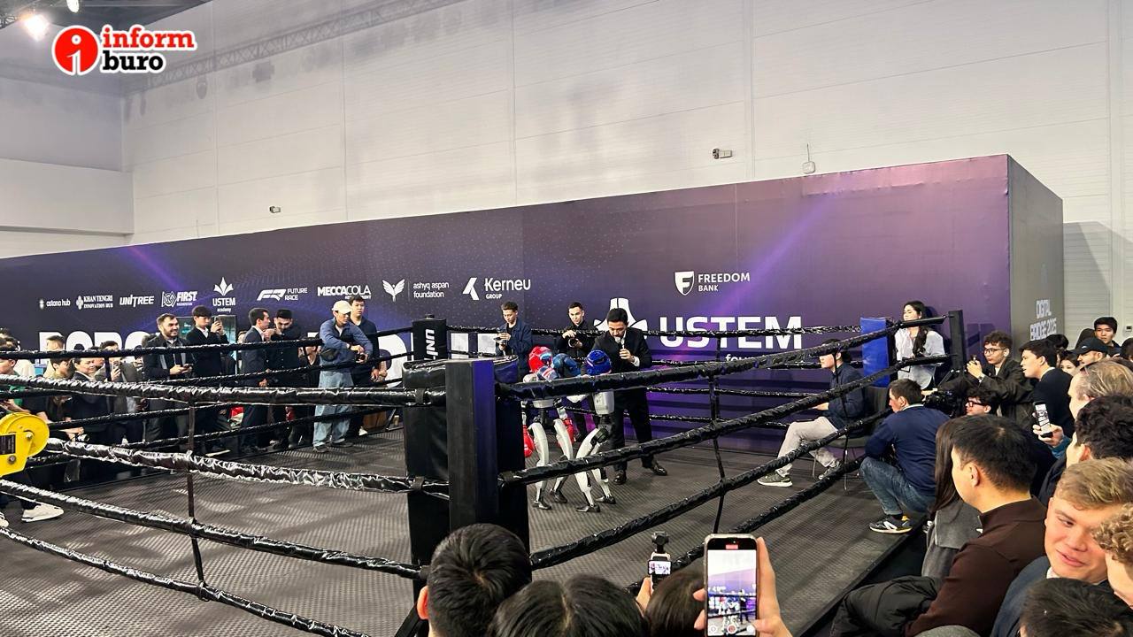 Тем временем внимание гостей форума уже переключилось на боксерский ринг по соседству, где два гуманоида, также управляемые людьми, коряво боксировали друг с другом. После непродолжительного спарринга один из роботов упал на спину, и рефери отсчитал ему нокдаун.