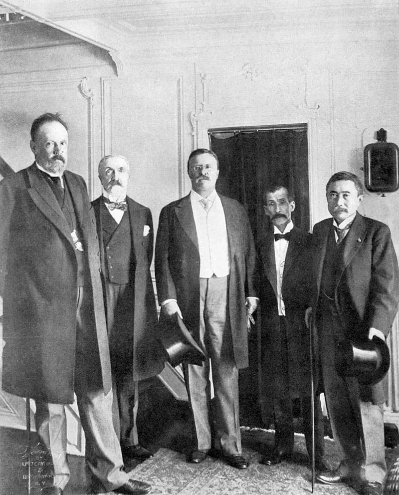 10 декабря 1906 года Нобелевский комитет присудил премию мира Теодору Рузвельту с формулировкой "за роль в прекращении кровопролитной войны" между Японией и Россией. Сам президент на награждение не явился, его послание Нобелевскому комитету зачитывал посланник в Норвегии Герберт Пирс. Более того, сам Рузвельт прочитал Нобелевскую лекцию в Осло только в 1910 году, когда уже покинул Белый дом.