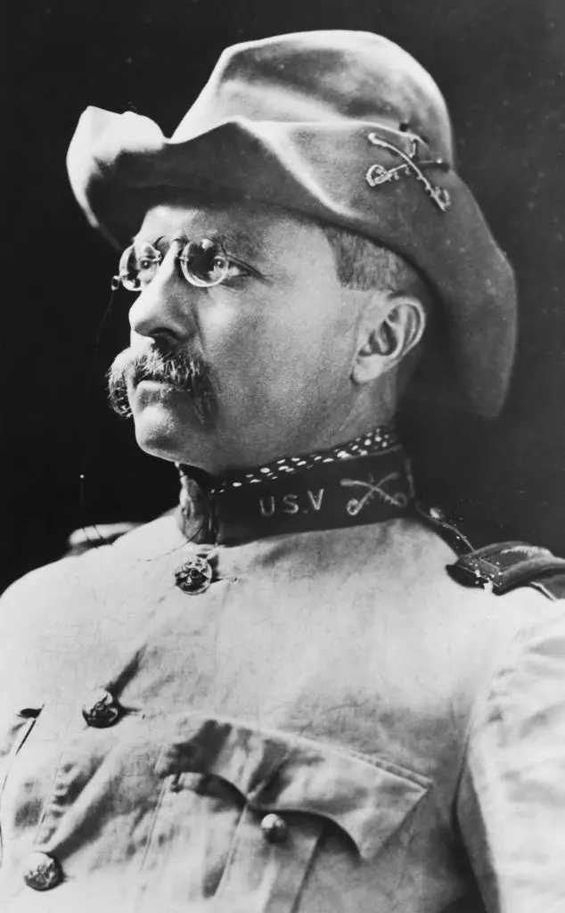 Теодор Рузвельт был, кроме того, символом патриотической силы. Охотник и великолепный стрелок, он бросил свою должность в министерстве и отправился добровольцем на американо-испанскую войну. Он возглавил 1-й добровольческий кавалерийский полк, получивший название "Мужественные всадники Рузвельта".