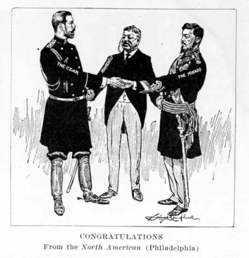 Выгодно это было и самому президенту США. В октябре 1905 года журнал American Monthly Review of Reviews писал: "Американский народ и Теодор Рузвельт должны быть благодарны Русско-японской войне хотя бы за одно. Она предоставила нам как нации, а нашему президенту как верховному судье возможность продемонстрировать, что мы являемся чрезвычайно миролюбивой нацией и что человек с "большой дубинкой", человек, которого обвиняли в показном хвастовстве, который, как нам говорили, изрядно желал поссорить нас с остальным миром, на самом деле миротворец".