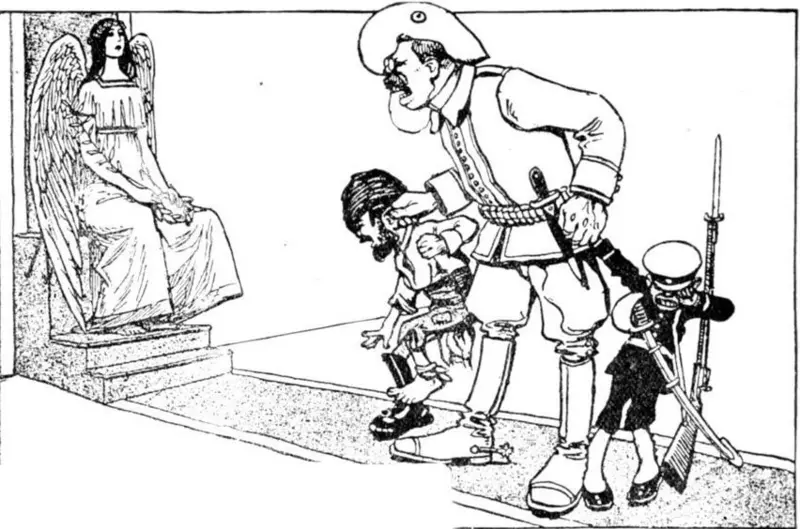 На американских карикатурах того времени Рузвельта по-прежнему изображали с дубинкой в руке. А на одном из рисунков соседствовали два портрета президента: на одном он с саблей покоряет холм Сан-Хуан, на другом – держит оливковую ветвь.