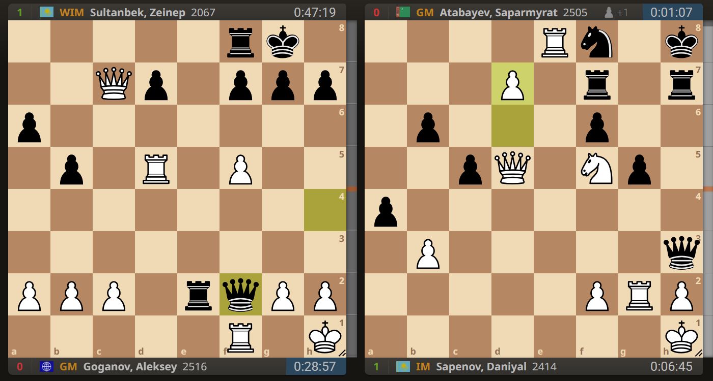 Хотя финиш у WIM Зейнеп Султанбек (2067) и IM Ксении Балабаевой (2332) не получился (Зейнеп так и вовсе провалила два последних тура), никто из конкуренток не смог догнать их: обе набрали по 4,5 очка. А первый приз среди женщин – 1000 долларов – достался 21-летней шахматистке из Шымкента, которая к тому же выполнила норму IM. Можно, конечно, сказать, что Зейнеп сейчас активно помогает гроссмейстер Александр Моисеенко, один из тренеров женской сборной Казахстана, но ведь за доской она играет с грозными соперниками один на один.