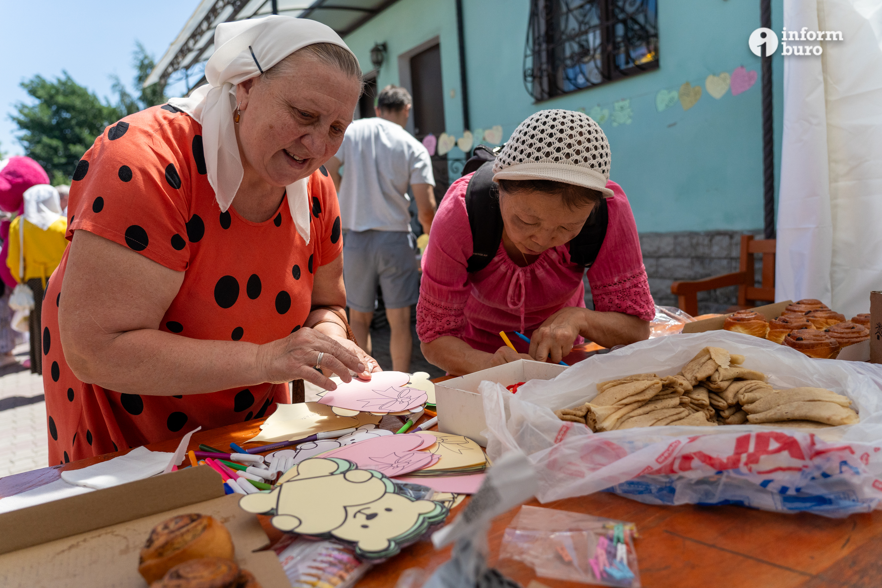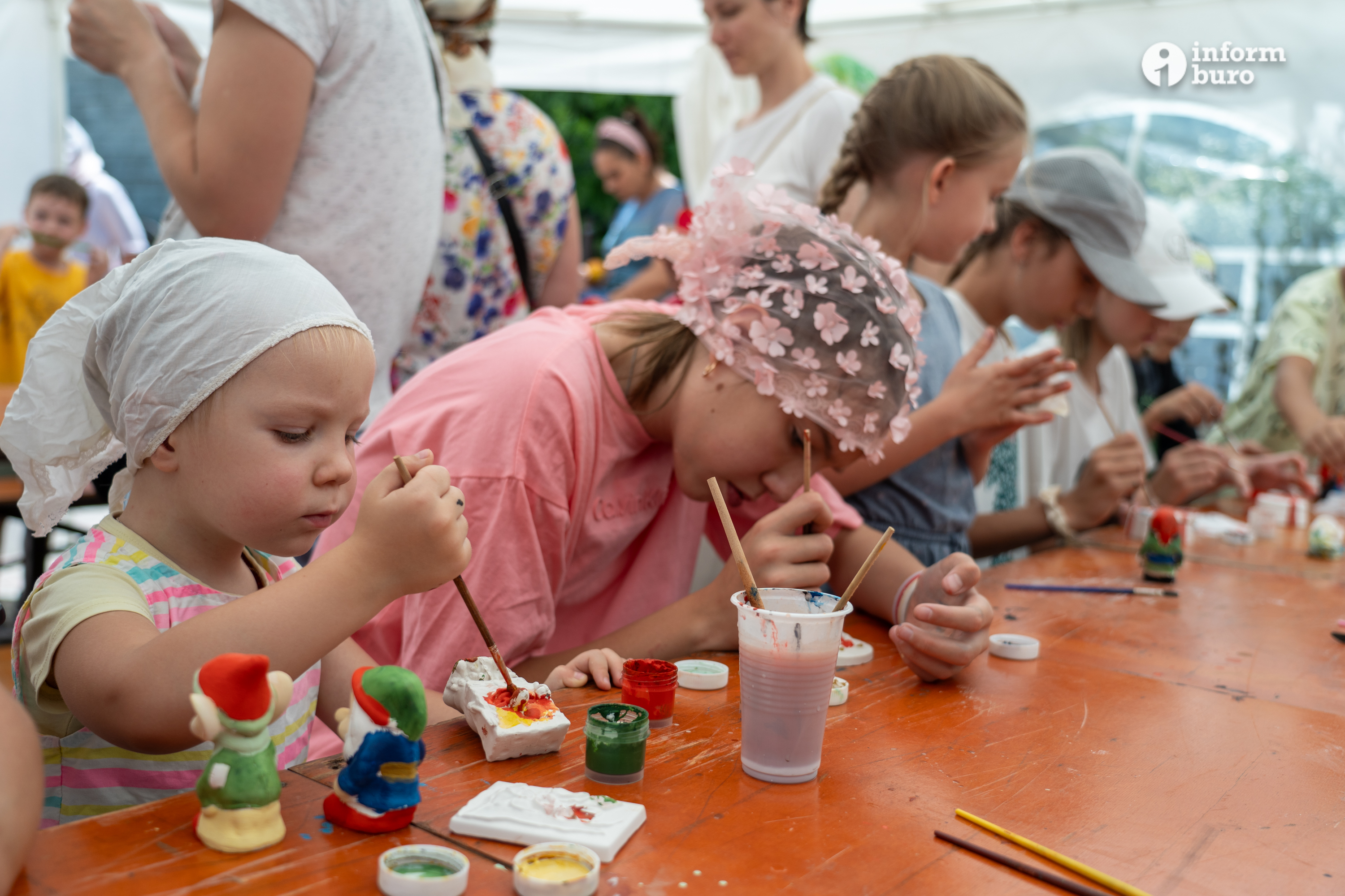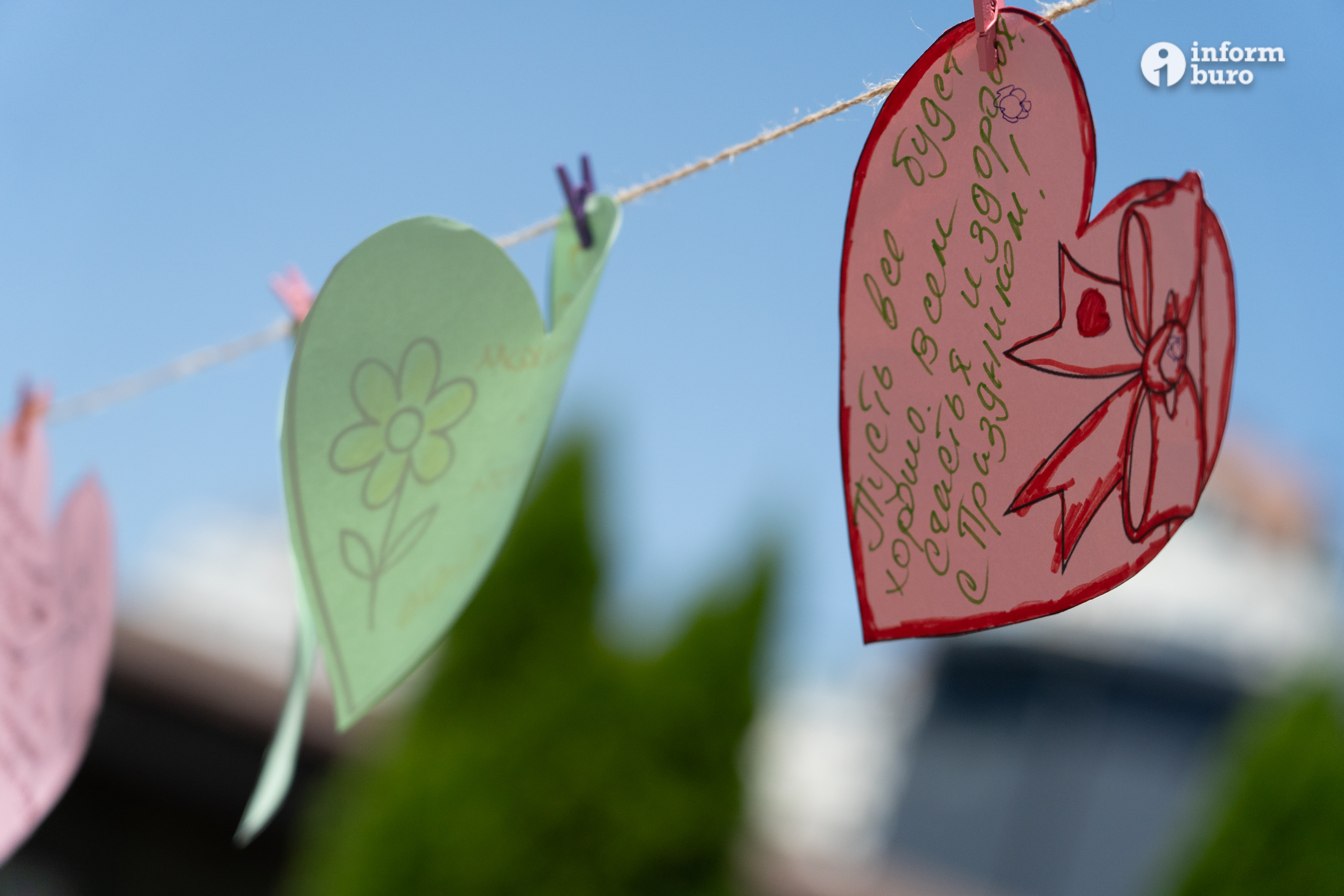 Гостей встречали весёлые аниматоры в оригинальных костюмах, приглашали их принять участие в мастер-классах по изготовлению забавных игрушечных зверей из воздушных шаров и росписи гипсовых фигурок, предлагали сделать открытку и оставить на ней добрые пожелания. Пока дети рисовали, пели, танцевали и ловко превращали шарики в смешных щенков и зайчат, родители аплодисментами награждали многодетных пап и мам, а также супружеские пары, прожившие в браке не меньше 30 лет.