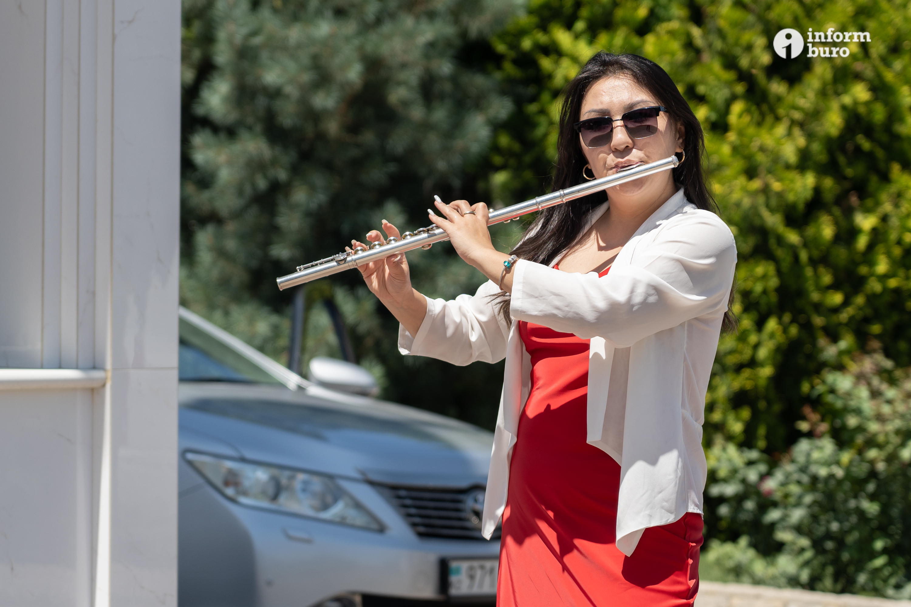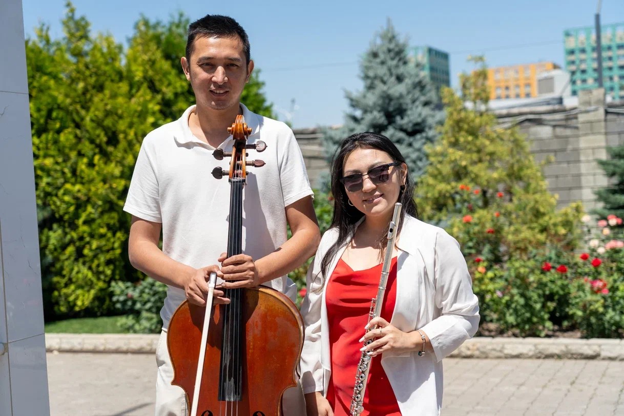 Виолончелист Бахытжан Жантурганов и флейтистка Сулужан Елубаева покорили зрителей виртуозной игрой на музыкальных инструментах. Они исполняли классические и современные композиции настолько проникновенно и зажигательно, что люди принимались танцевать.