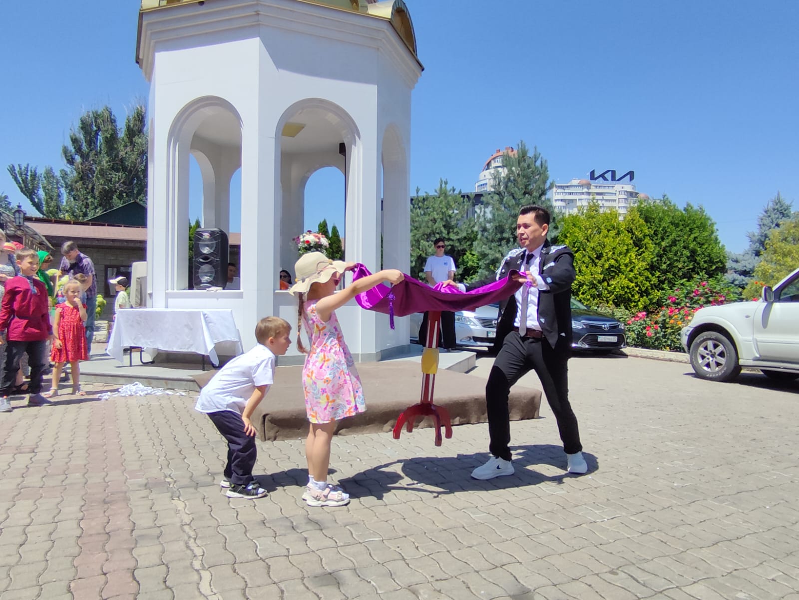 Аниматоры поднимали настроение детям и взрослым и развивали их творческие способности. В завершении праздника гости неохотно расходились по домам, малыши не хотели расставаться с пушистым розовым медведем, в роли которого выступил Владислав Авдошин. На праздник он пришёл с невестой Саей Ибрагимовой. Предложение руки и сердца Владислав уже сделал, заветное "да" в ответ услышал. Не исключено, что в следующем году влюблённые придут на праздник в статусе законных супругов.