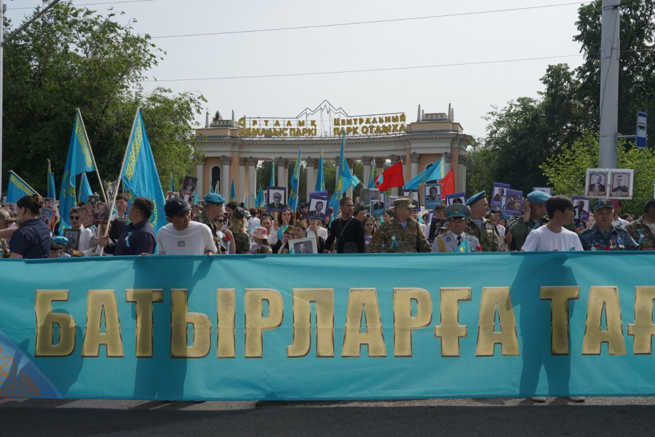 "В наших семьях хранят память о подвигах наших дедов и прадедов, юность которых пришлась на ту страшную войну. Кто-то из них пришли домой покалеченными, другие и вовсе остались на поле боя. Они пережили такое, что нам и не снилось. Они на своей шкуре испытали те ужасы, рассказывали нам, как родители делились последним куском с детьми и стариками, как рядом умирали близкие и никто не мог помочь", – рассказали участники шествия Ерлан и Михаил.