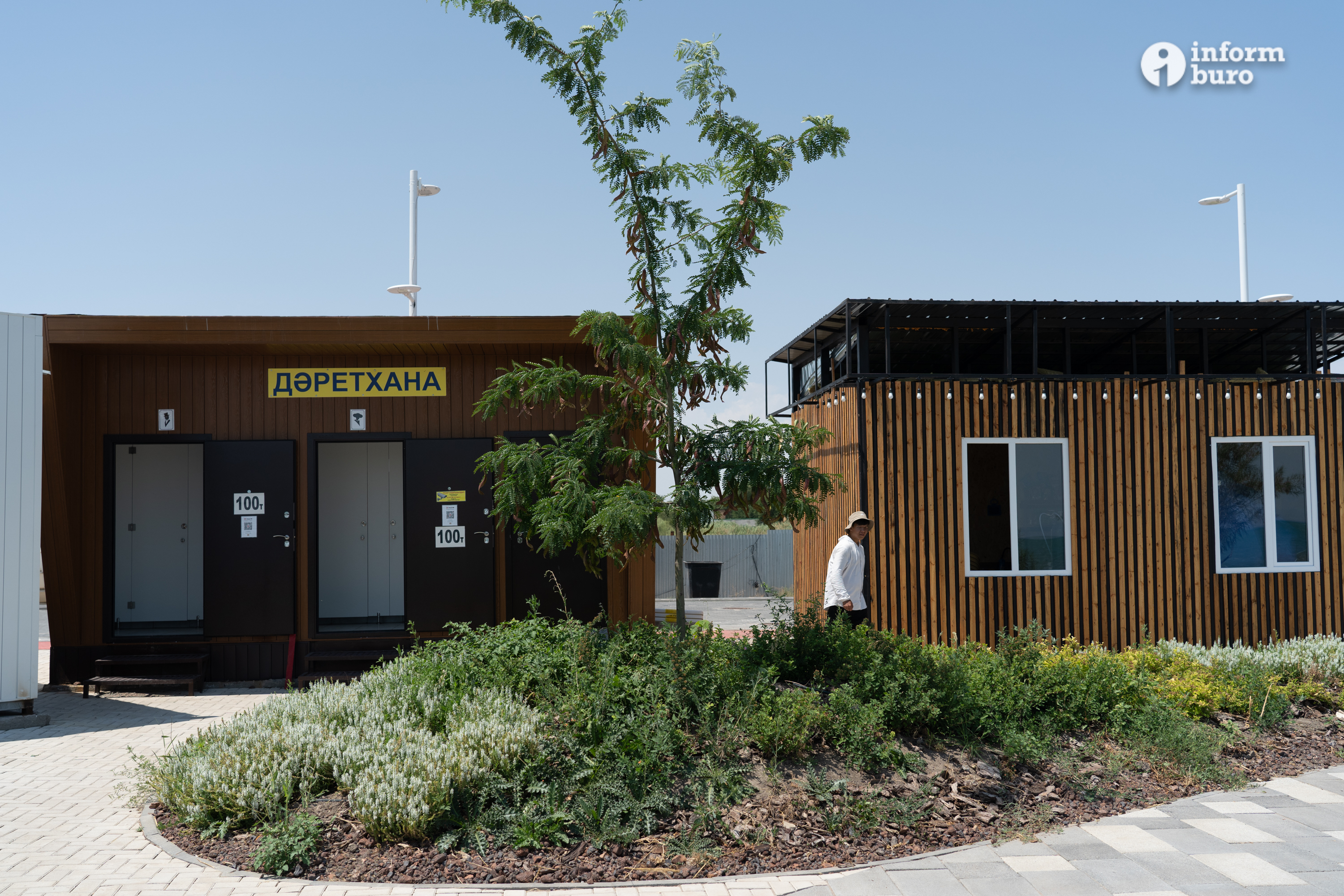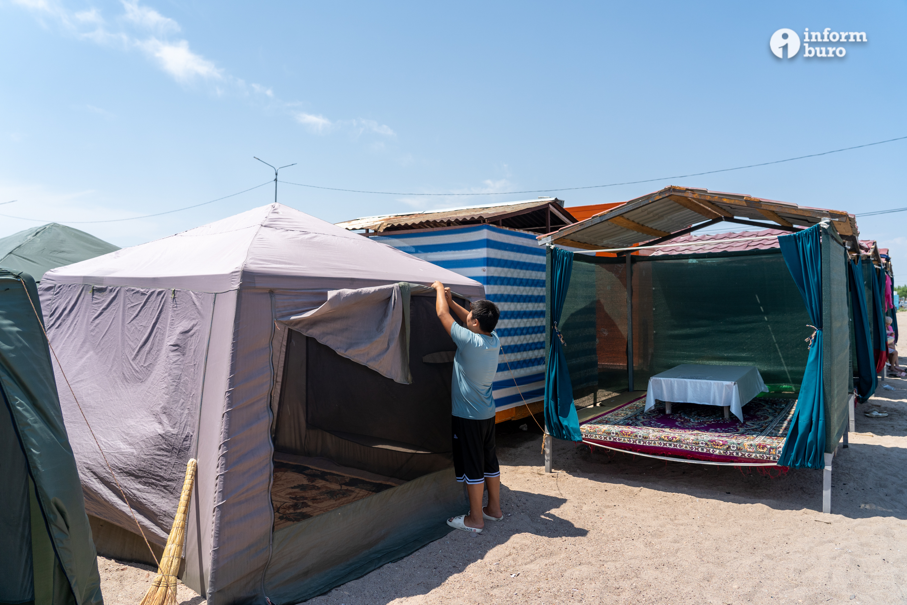 Здесь больше навесов и беседок, которые сдают в аренду по 7000 тенге. Кому-то удобно, ведь можно укрыться от солнца и всей семьёй разместиться в тени. Но многие, наоборот, воспринимают это как навязанную платную услугу и задаются вопросом, почему на муниципальном пляже приходится платить за элементарный комфорт.