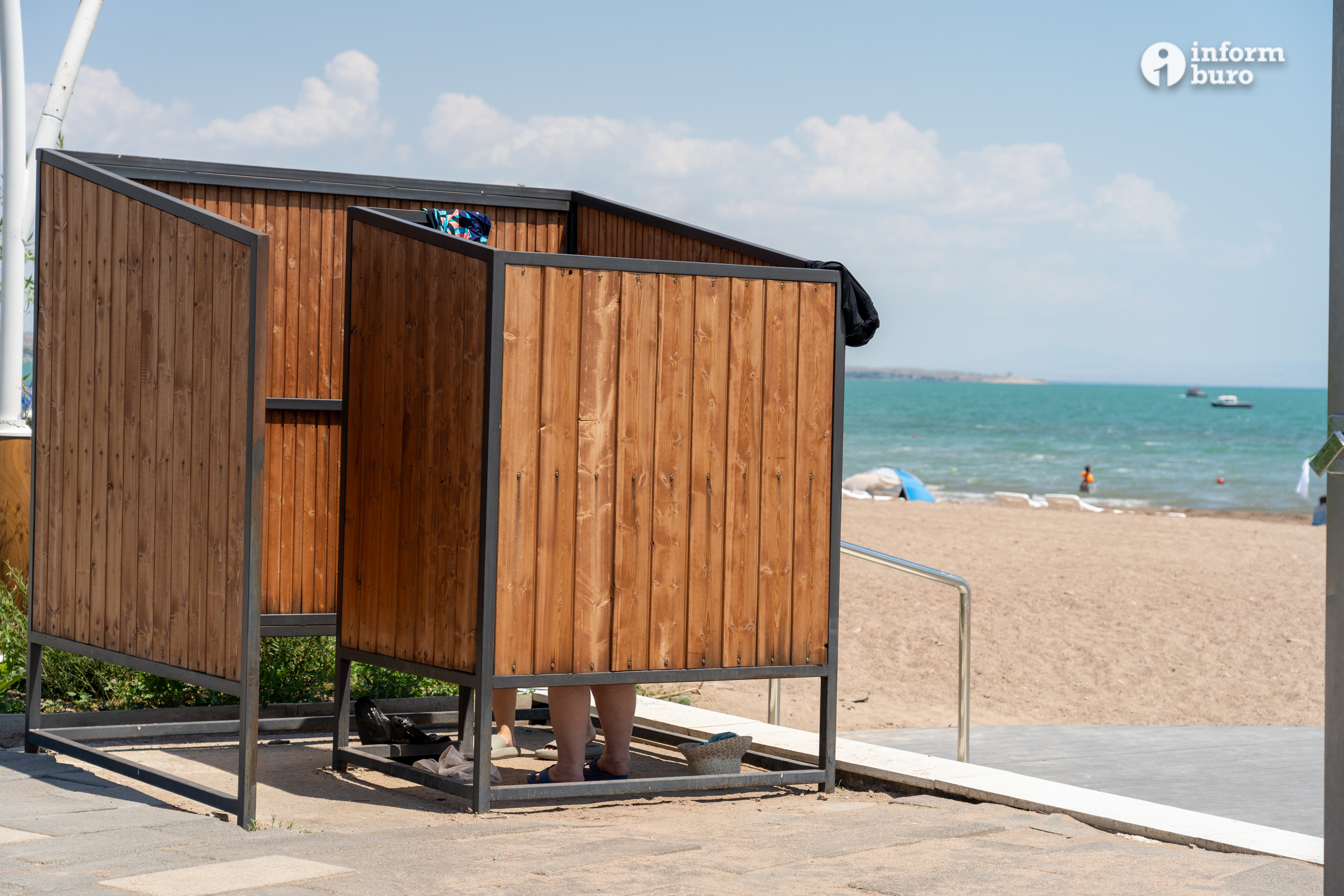 Современные туалетные кабинки установлены с удобным интервалом, так что долго искать их или идти далеко не придётся. Единственный минус – вход в туалет платный. Правда, оплатить услугу можно быстро – по QR-коду. Кабинки для переодевания тоже преобразились: теперь они эстетично вписываются в общий облик пляжа и смотрятся аккуратно.