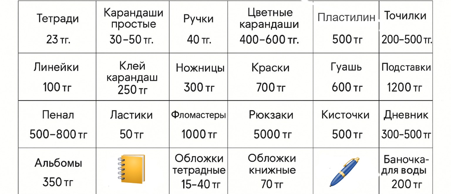 В 2025 году разброс цен на школьные принадлежности впечатляет: с рук тетрадь можно купить за 20 тенге, а в магазинах на такую же могут прикрепить ценник в 40 тенге. Бюджет на подготовку к школе первоклассника может оказаться приличным, особенно если взрослые закупаются, не подбирая альтернативные варианты.