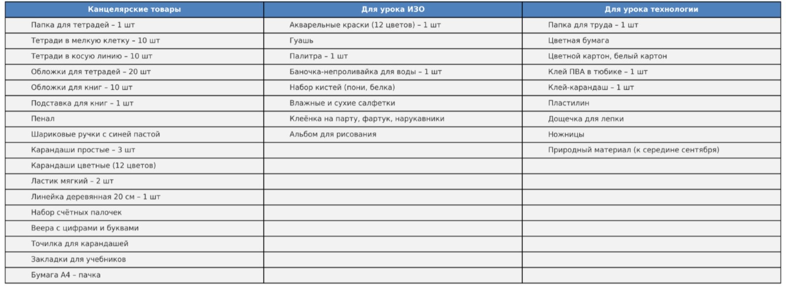 Сразу оговоримся, этот "чек-лист" актуален только для одной школы. На деле список товаров может отличаться. Например, этот список выдали в государственном общеобразовательном учреждении. Но есть ещё частные школы и гимназии, где список может быть гораздо длиннее.
