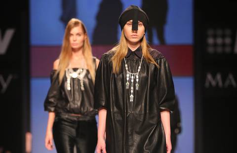 Наконец, наступил тот самый неловкий момент, чтобы признаться: хотя в один фэшн-день работали 7 дизайнеров, бурного обсуждения и громких аплодисментов удостоилась только одна из них - Айнур Турисбек. Её монопоказ был завершением первого дня KFW. Недавно коллекция казахстанки была представлена в шоу-руме недели моды в Париже и, как говорят, пользовалась успехом. Айнур не изменяет избранному стилю и, выпуская свои авторские куртки, шорты, платья, по-прежнему работает, в основном, с натуральной кожей чёрного, а также оливкового цвета. На этот раз в её творчестве причудливо сплелось европейское средневековье и историческое прошлое казахов. Казахские серебряные украшения отлично дополняли кожаные платья и балахоны из хлопка, напоминающие рясы монахов тайных орденов.