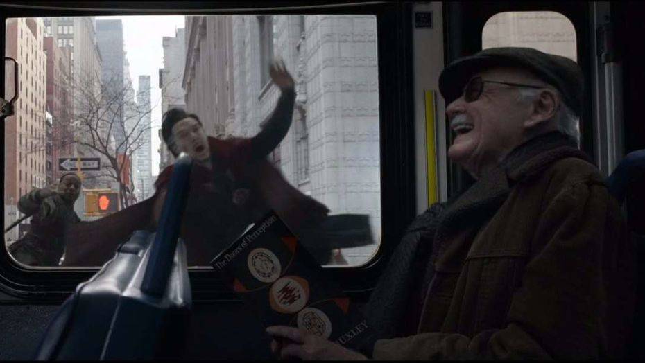 В фильме герой Стэна Ли находится в космосе и рассказывает о своих похождениях группе инопланетян из расы Наблюдателей. Эту расу в комиксах придумал сам Ли. Наблюдатели – древнейшие космические существа, которые тайно следят за разумными цивилизациями по всем уголкам вселенной. Это камео примечательно тем, что оно придаёт всем остальным появлениям Ли в кино новое значение. Оказывается, всё это время Стэн не играл разных персонажей, а всегда был Наблюдателем, который под разными личинами осуществляет сбор информации на Земле. К примеру, в этой сцене он рассказывает своим соратникам про случай, когда он "работал в курьерской службе" – отсылка на его камео в фильме "Первый мститель: Противостояние".