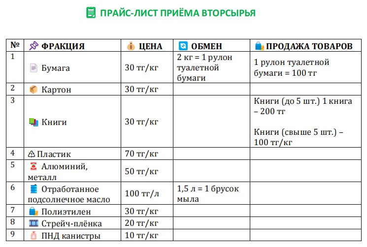 Теперь люди могут сдавать за наличку пластиковые бутылки, бумагу, картон, книги, алюминиевые банки, полиэтилен, стрейч-плёнку, ПНД-канистры и даже отработанное подсолнечное масло.