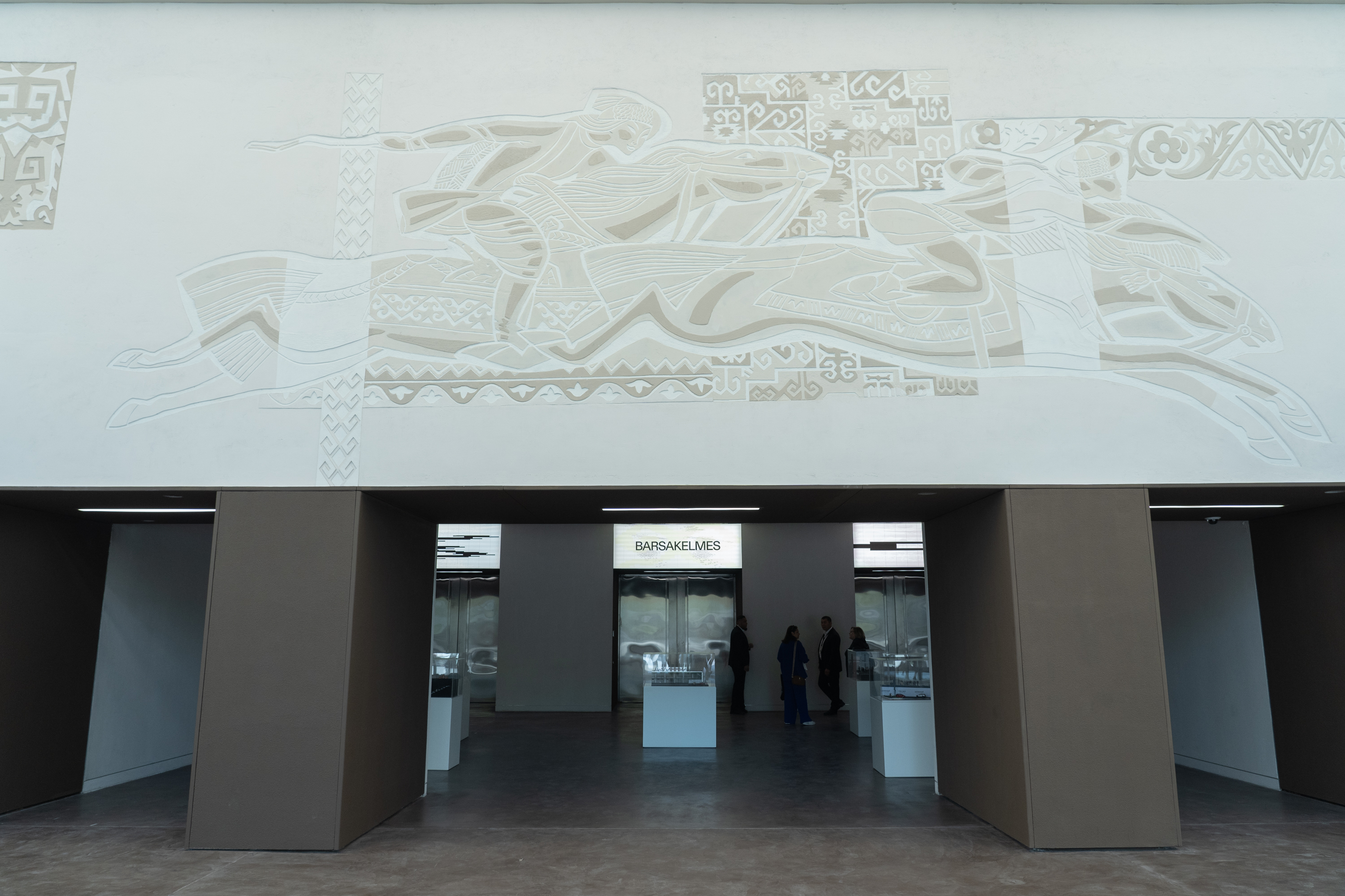 "Главный фасад символизирует собой облако длиной 42 метра, оно как бы является проводником диалога между Тенгри (небом) и Умай (землёй) и отображает бесконечные возможности жизней, рождающиеся из их союза. На протяжении дня игра света и тени меняет полотно фасада, даёт простор фантазии. Воздушная форма ламелий высотой 8,5 метра зрительно воспринимается как своеобразный занавес перед экраном кинотеатра, вызывая воспоминания о первоначальной функции здания и предлагая всем прикоснуться к искусству", – считает архитектор.