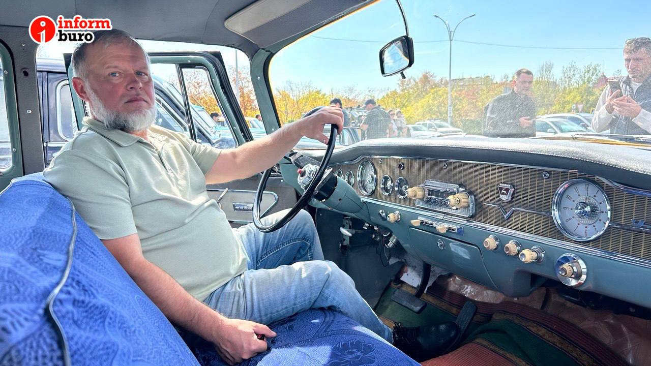 Дмитрий (отказался называть фамилию и фотографироваться), хозяин "Победы" 1953 года выпуска, рассказал, что купил машину, чтобы восстановить её. Он постоянный участник таких выставок.