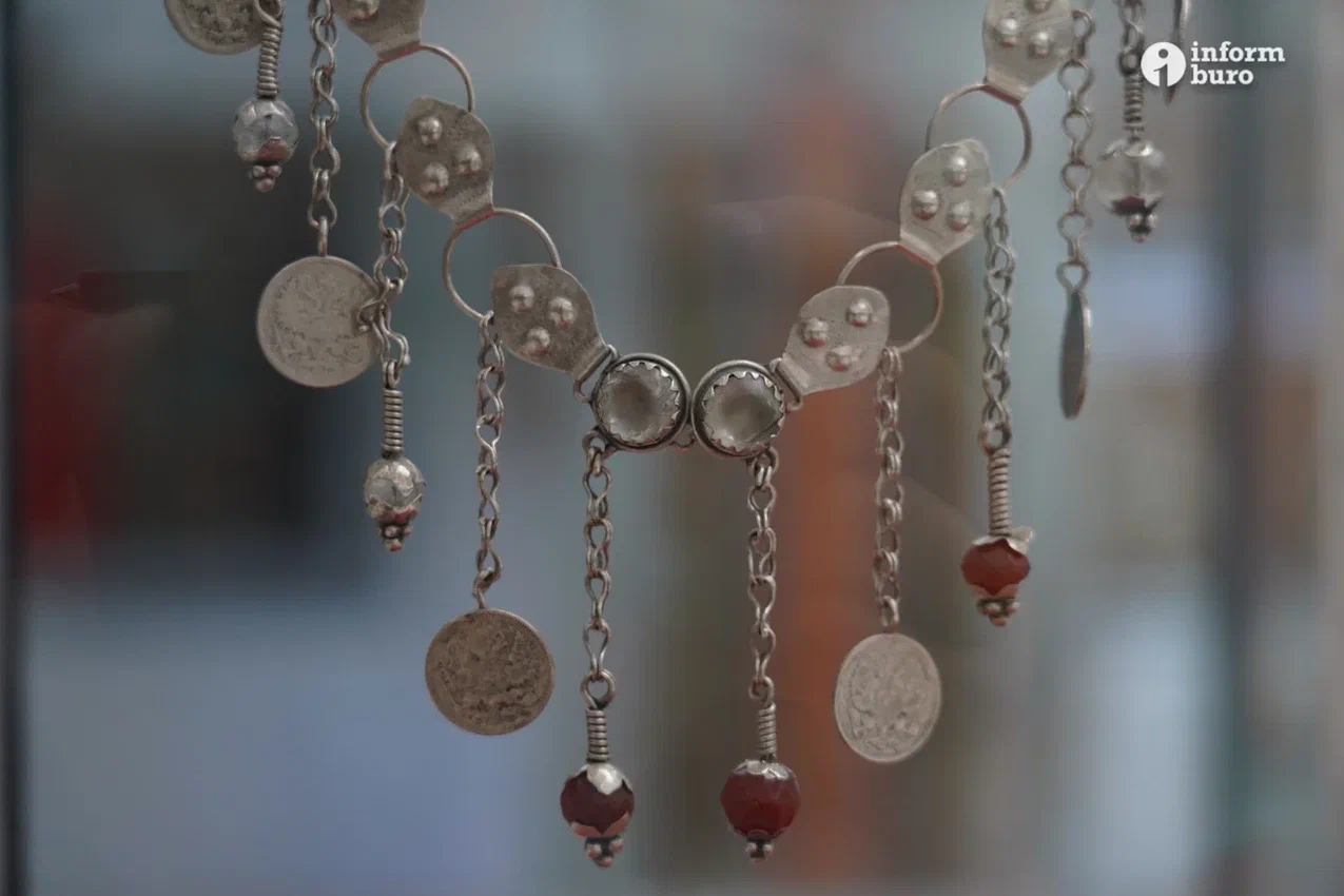 Посетители могут полюбоваться традиционным свадебным нарядом с саукеле – головным убором невесты, декорированным серебряными деталями и полудрагоценными камнями. В экспозиции также представлена богатая коллекция ювелирных украшений: от привычных серёг и браслетов до традиционных шекелік и шашбау. По словам смотрителя зала, невозможно выделить какой-то один экспонат – каждая вещь по-своему уникальна и хранит в себе часть истории казахского народа.