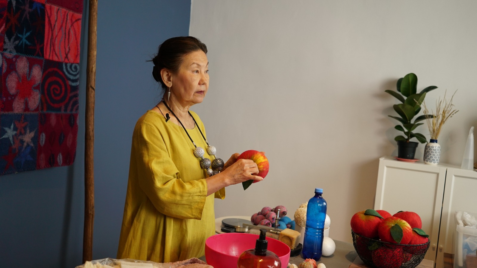 "В настоящее время всё наоборот: войлок в тренде не только в нашей стране, но и во всём мире. Все ценят натуральность, экологичность, полезные свойства для здоровья человека, его лёгкость, комфортность, терморегулирующие свойства. Весь мир отходит от искусственных материалов, синтетики. Более того, шерсть – очень податливый материал, из которого можно делать как ковры, подушки, корпеше и панно для интерьера, так и одежду, обувь, аксессуары, сувениры, по-разному использовать его в арт-индустрии", – рассказала она.