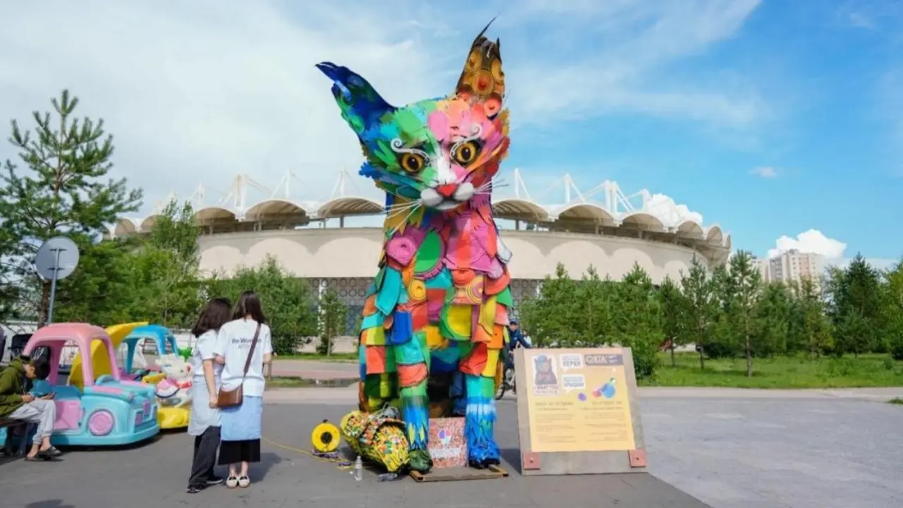 В центральном парке Астаны появилась фигура кота из переработанного пластика
